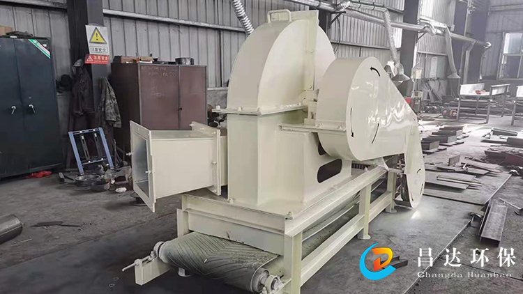 木料由進料口送入,當木料按接觸到削切刀片時,跟著削切刀盤的高速旋轉進行削切,其切削機構是一個旋轉的鼓輪,上面安裝若干把飛刀,飛刀旋轉時將木材加工成木片。鼓輪外緣上有多個方形通孔,切削下來的合格片料通過網篩孔落下,有底部排出,大的料片將在機內再次切削。